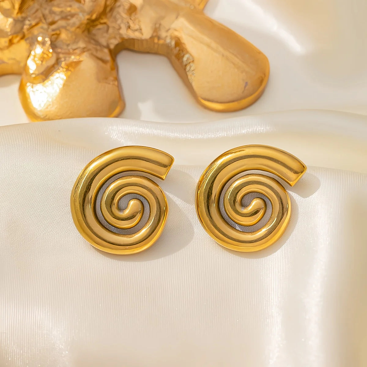 Fashion Luxury 18K Gold Plated Women's Jewelry Set with Spiral Stud Earrings And Pendant Necklace Stainless Steel