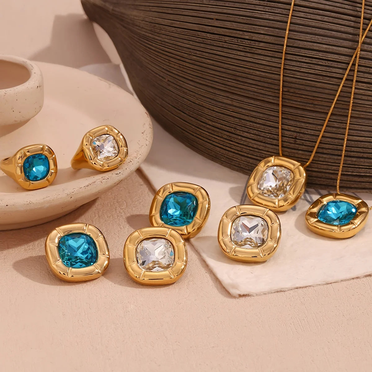 Retro European American Fashion Women's Gold Plated round Square Flower Zircon Pendant Small Batch Square Shaped Jewelry